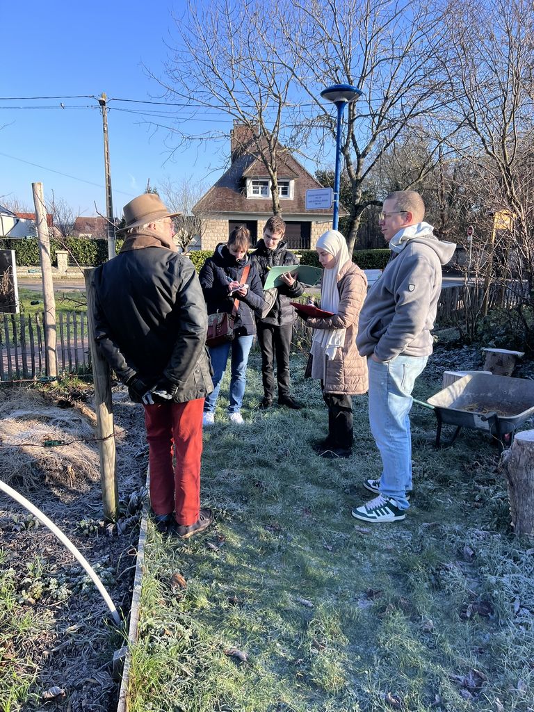 Dans le cadre de leur projet, les élèves ont visité le jardin de l’association Les Voisins Éco-Jardiniers pour découvrir son fonctionnement et échanger avec les jardiniers. Ils ont pu poser des questions, observer le travail collectif et comprendre comment l’association met en pratique les valeurs citoyennes : entraide, respect de l’environnement et engagement local. Cette visite a permis aux élèves de voir concrètement comment l’EMC se traduit dans la vie quotidienne à travers des initiatives locales